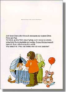 Seite 4, Leseprobe: Auf dieser Seite siehst du mich zusammen mit meinen Eltern Petra und Paul. Sie haben großen Wert darauf gelegt, auch einmal in meinem tollen Baby-Buch abgebildet zu werden. Diesen Herzenswunsch habe ich ihnen selbstverständlich erfüllt. Was meinst du: Wem von beiden sehe ich wohl ähnlicher? |