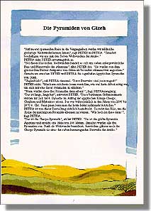 Leseprobe: "Auf unserer spannenden Reise in die Vergangenheit werden wir zahlreiche großartige Weltwunder kennen lernen", sagt PETER zu PETRA. "Zunächst beschäftigen wir uns mit den Sieben Weltwundem der Antike." PETRA sieht PETER erwartungsfroh an. "Bei diesen klassischen Weltwundem handelt es sich um sieben außergewöhnliche Bau- und Kunstwerke des Altertums", fährt PETER fort. "Sie wurden von dem griechischen Dichter Antipatros von Sidon als besonders rühmenswert angesehen." Gemeinsam erreichen PETER und PETRA die sagenhaften ägyptischen Pyramiden von Gizeh. "Unglaublich!", ruft PETRA staunend. "Diese Bauwerke sind ja riesengroß!" PETER nickt. "Man kann sich heute kaum vorstellen, wie viel harte Arbeit nötig war, um auch nur eine dieser Pyramiden zu errichten." "Wann wurden diese drei Pyramiden denn erbaut?", fragt PETRA neugierig. "Das ist lange, lange her", antwortet PETER. "Diese berühmten Grabmonumente wurden zur Zeit der 4. Dynastie im Auftrag der ägyptischen Könige Cheops, Chephren und Mykerinos erbaut. Das war wahrscheinlich in den Jahren von 2590 bis 2470 v. Chr. Ganz genau kann man das heute leider nicht mehr feststellen." PETRA ist von dieser Darstellung sichtlich beeindruckt. Sie reckt den Hals, um die Spitze der mächtigsten Pyramide erkennen zu können. "Wie hoch ist diese denn?", fragt PETRA. "Das ist die Cheops-Pyramide", erklärt PETER. "Sie ist die größte Pyramide Ägyptens und erreicht eine Höhe von 146 Metern. Zunächst wurden alle drei Pyramiden von Gizeh als Weltwunder bezeichnet. Inzwischen gilt nur noch die Cheops-Pyramide als eines der sieben herausragenden Bauwerke der Antike." |