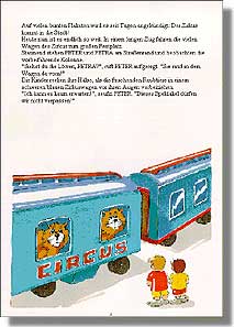 Leseprobe: Auf vielen bunten Plakaten wird es seit Tagen angekündigt: Der Zirkus kommt in die Stadt! Heute nun ist es endlich so weit. In einem langen Zug fahren die vielen Wagen des Zirkus zum großen Festplatz. Staunend stehen PETER und PETRA am Straßenrand und beobachten die vorbeifahrende Kolonne. "Siehst du die Löwen, PETRA?", ruft PETER aufgeregt. "Sie sind in dem Wagen da vom!" Die Kinder recken ihre Hälse, als die fauchenden Raubtiere in einem schweren blauen Zirkuswagen vor ihren Augen vorbeiziehen. "Ich kann es kaum erwarten!", seufzt PETER. "Dieses Spektakel dürfen wir nicht verpassen!" |